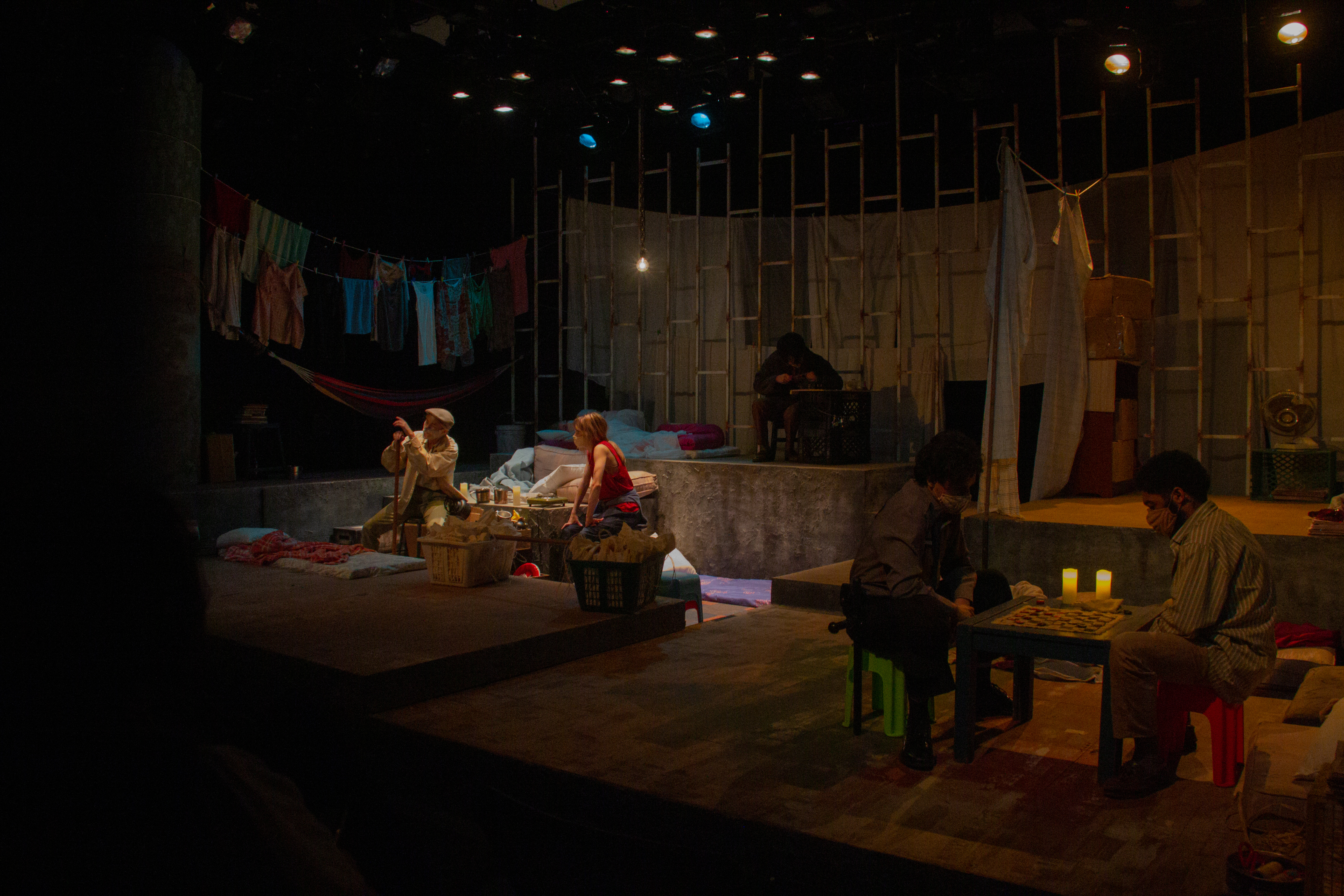 I wanted to create a space where ghosts would roam, the lives of those who’ve lived and died here and still haunt the ones who stayed. I wanted it to feel isolating, unlivable yet personal to each character. We took a lot of care and time in thinking what things would each character have even with their financial contraints? How can we show personality, skill, care, passions? It was a thrilling experience to be in the rehearsal room and craft these personal objects with the performers; their generosity and grace made it so much more satisfying.